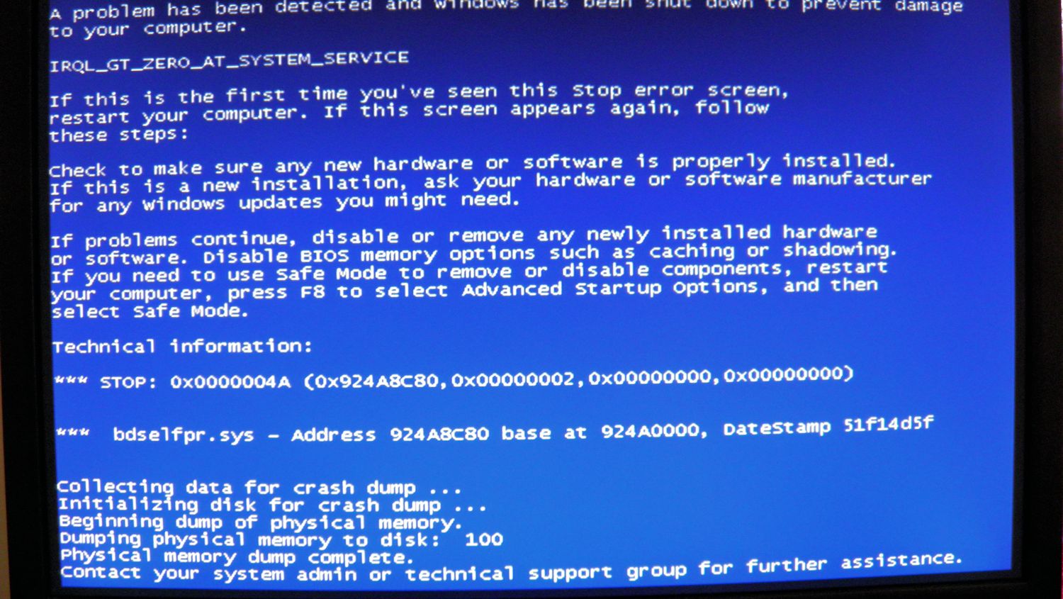 Așa se pare.Nu am habar ce defecțiune poate fi,dar îmi dă ecran albastru tot mai des.Prima dată am văzut asta: